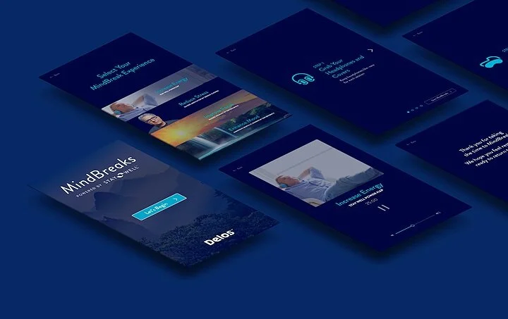The challenge: design a simple, immersive experience. For Delos’ app in collaboration with Deepak Chopra & Massage Envy, I opted for a dark, dreamy theme that paired nature imagery, guiding the user through the hardware of the meditation experience. Read more about the Mindbreaks concept and the Mindbreaks app on WellLivingLab.com.