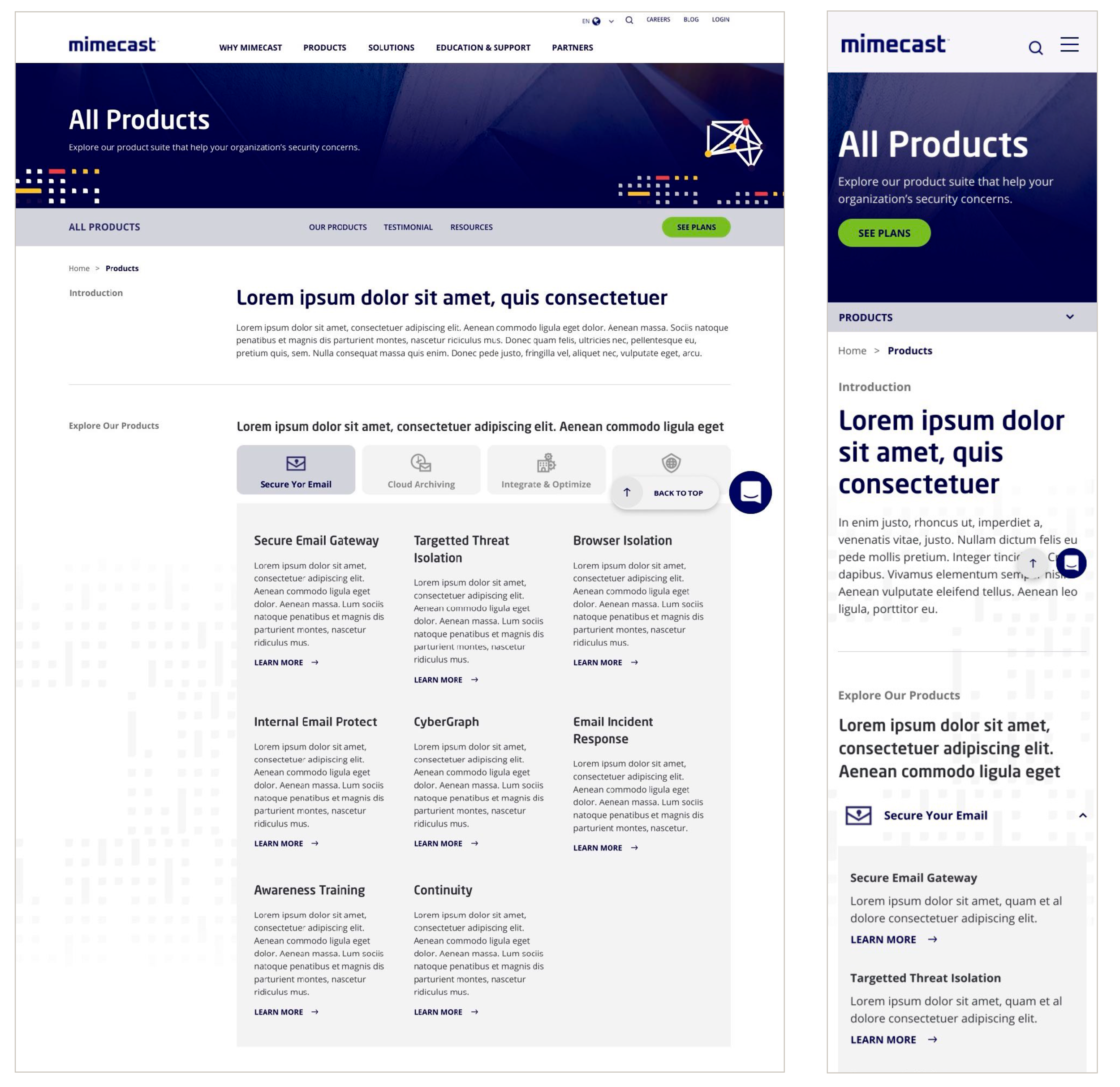 As the User Interface (UI) Designer, I was primarily responsible for translating low fidelity mockups into high fidelity, usable prototypes in FIGMA. I collaborated with the client to ensure brand cohesion, and worked closely with developers to test and respond to production needs. The aim: a fresh look for Mimecast’s site, building out their growing news section while also highlighting their new product offerings (2022).